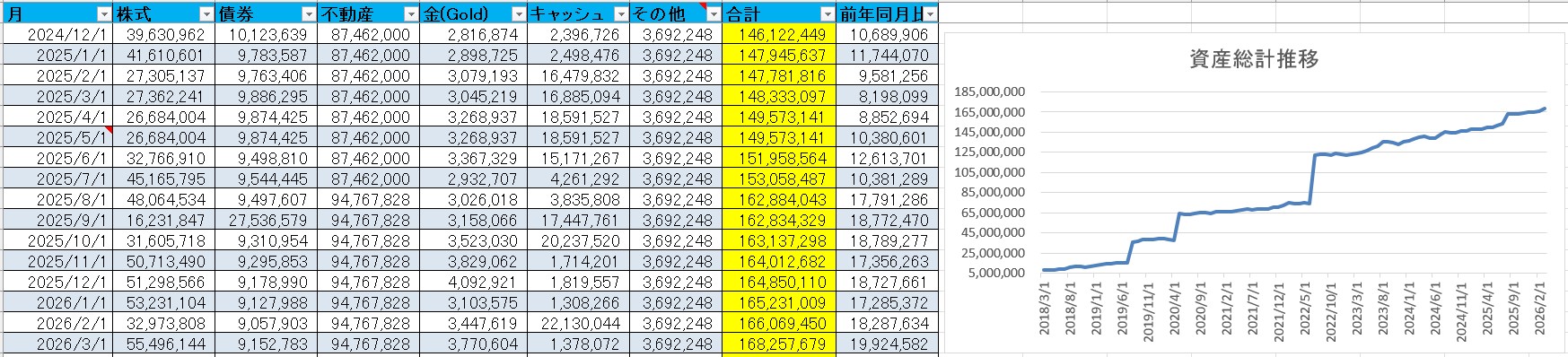 ホーム > 投資 > 2026年2月の資産運用結果報告(通算97ヶ月目) 2026/02/28 2026年2月の資産運用結果を報告します。 ※掲載データは2026年2月28日に集計したものです 総資産 絶好調! 総資産 投資環境スコア 問題なし 投資環境スコア トピック イスラエルがイラクに攻撃を開始。相場への影響が気がかり。 - 投資, 資産運用結果報告