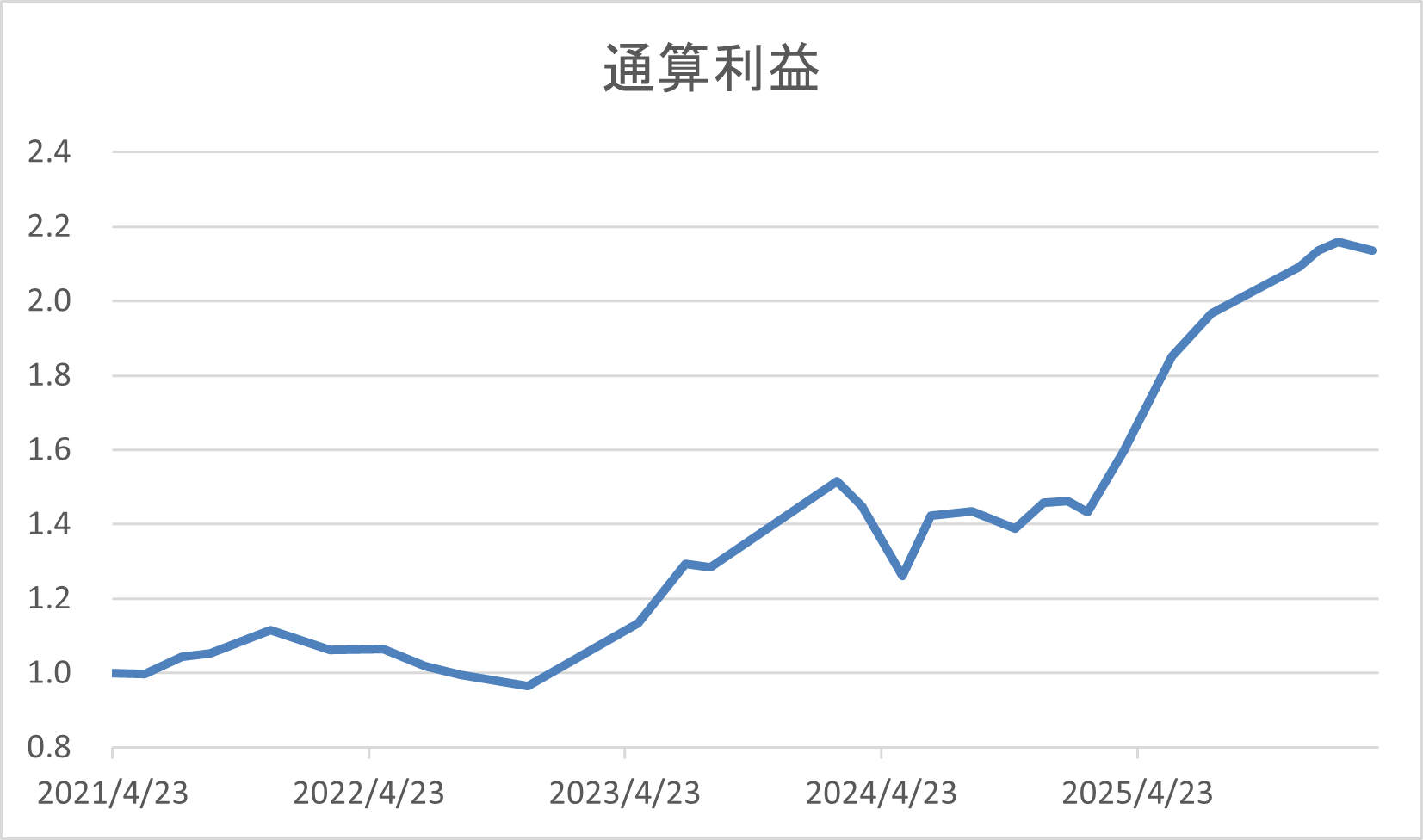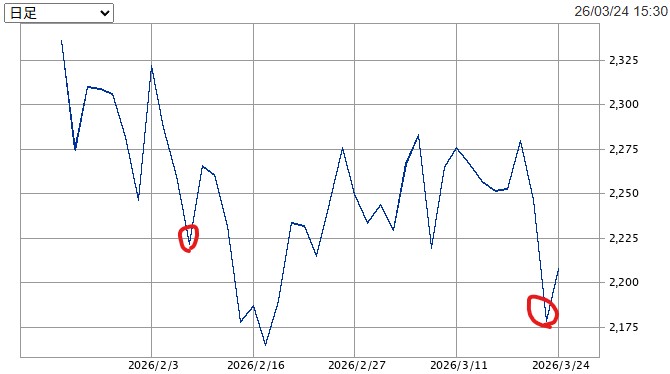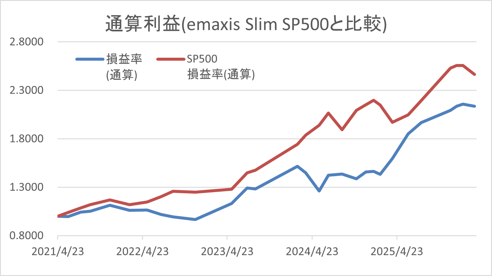 ホーム > 投資 > トレード報告 > 2026年2月6月~2026年3月23日 NASDAQ100 Hなし トレード 2026/03/24 トレード結果 トレード期間:2026年2月6月~2026年3月23日 期待リターン:5% 実現リターン(税引前):-1% トレード振り返り イラン戦争勃発により久々の損失となった。円安には助けられた。同期間のSP500と比較すると相対的に勝ったので、季節性の力を実感する結果であった。 累積リターン 累積リターン:114% 今回からSP500との比較も載せることにした。SP500を超えるのを目標に精進したい。 - トレード報告, 投資